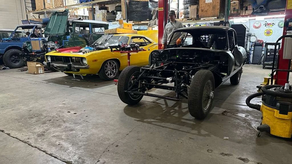 Inside the Legacy Motorworks shop, two very different philosophies of performance sit just a few feet apart. On one side, a 1967 Jaguar E-Type—arguably one of the most beautiful cars ever built—undergoing a meticulous restoration centered around its original 4.2-liter inline-six. On the other, a 1969 Plymouth Cuda, transformed into a modern American brute with a supercharged Hellcat engine at its core. Together, they tell the story of what we do every day: balancing preservation and reinvention, originality and performance, British refinement and American muscle.