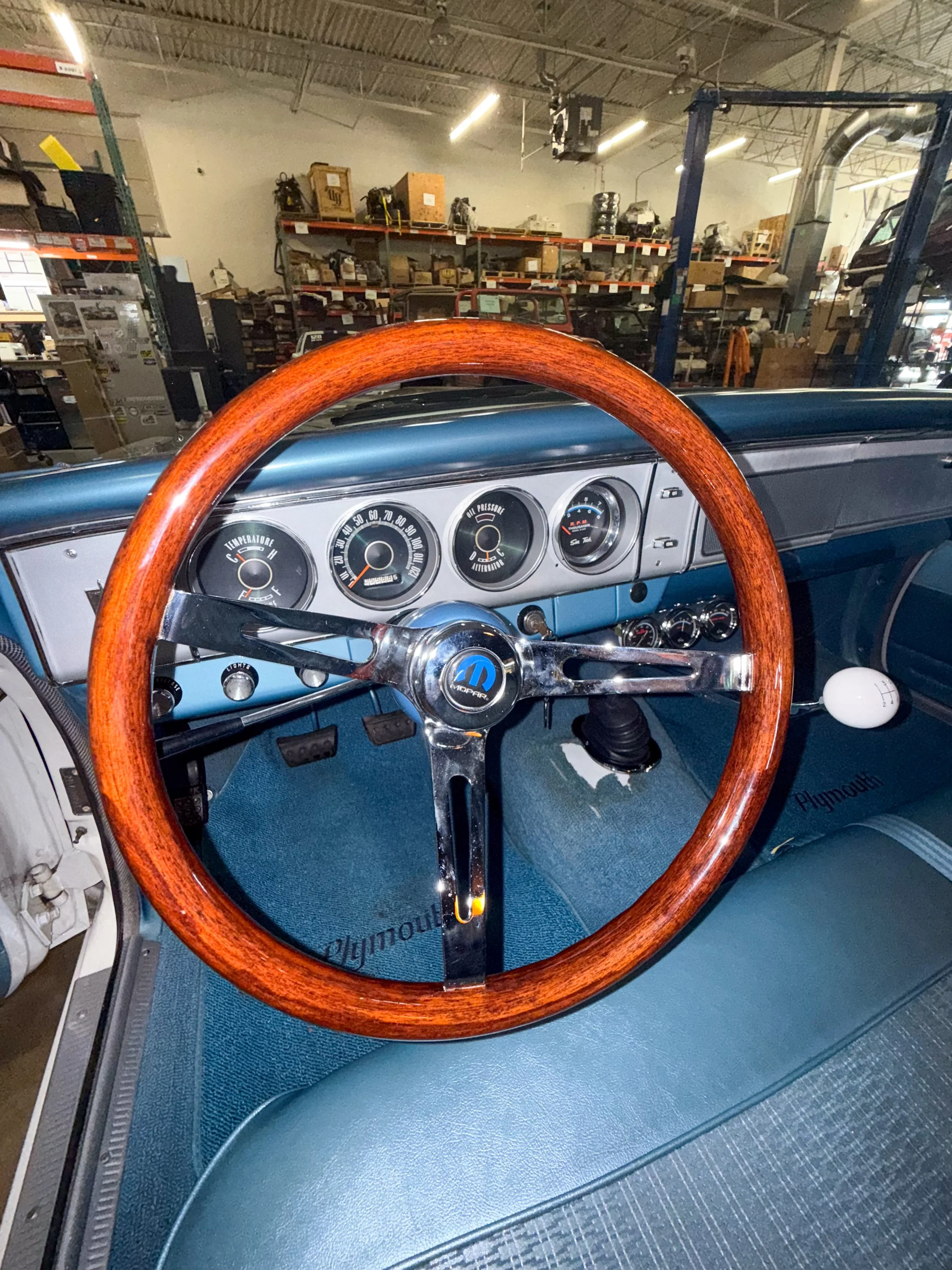 Inside, time stands still. The cabin remains exactly as Plymouth intended factory materials, textures, and switchgear intact. You sit low behind a slender wheel, surrounded by honest steel and vinyl that still carry the optimism of early ’60s Detroit. Turn the key and the Hemi’s deep, syncopated idle fills the space where silence used to live.