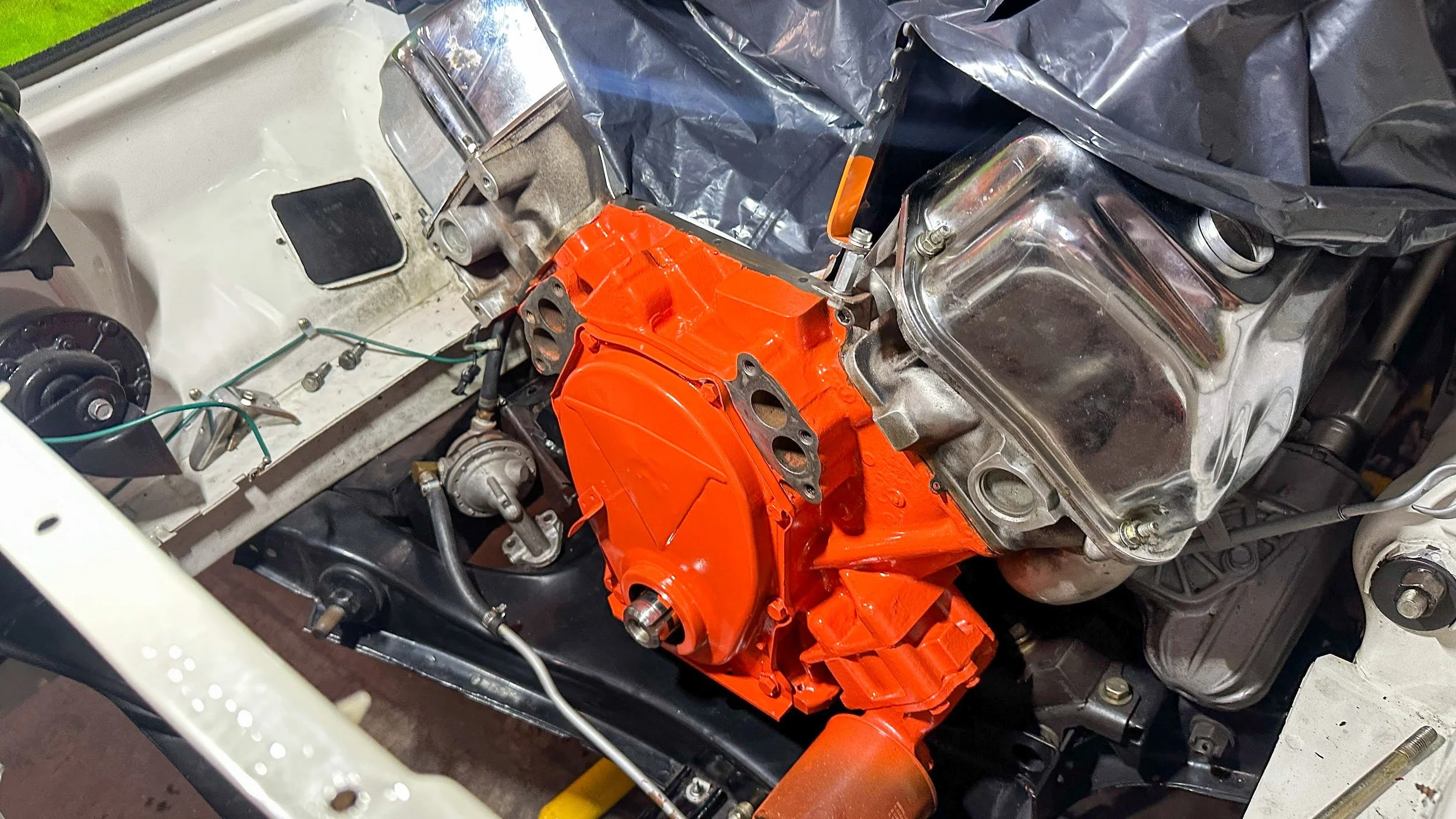 The Valiant’s purpose was never to blend in. Its Super Stock cross-flow intake and dual-quad carburetors summon the spirit of mid ’60s drag strips, when Chrysler engineers bent every rule in pursuit of quarter-mile dominance. Now, with its once-race-spec cam tamed for street duty and torque delivered through a Tremec 5 speed, the car channels that same raw intensity with road worthy civility.